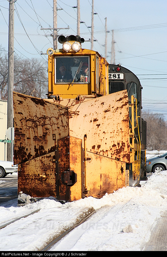 LSRC 281 and a Jordan Spreader plow south through Alpena Mechanical issues halted the plowing just moments later and the plow returned to the yard for repairs.