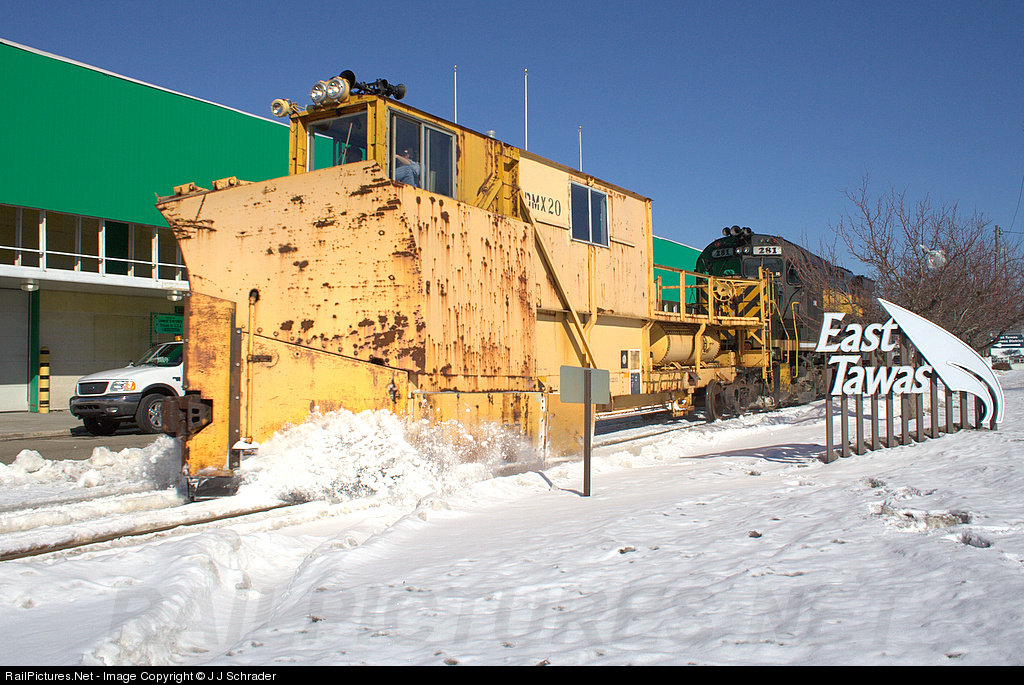 LSRC 281 and a Jordan Spreader plow south through downtown East Tawas on a 20 degree afternoon.