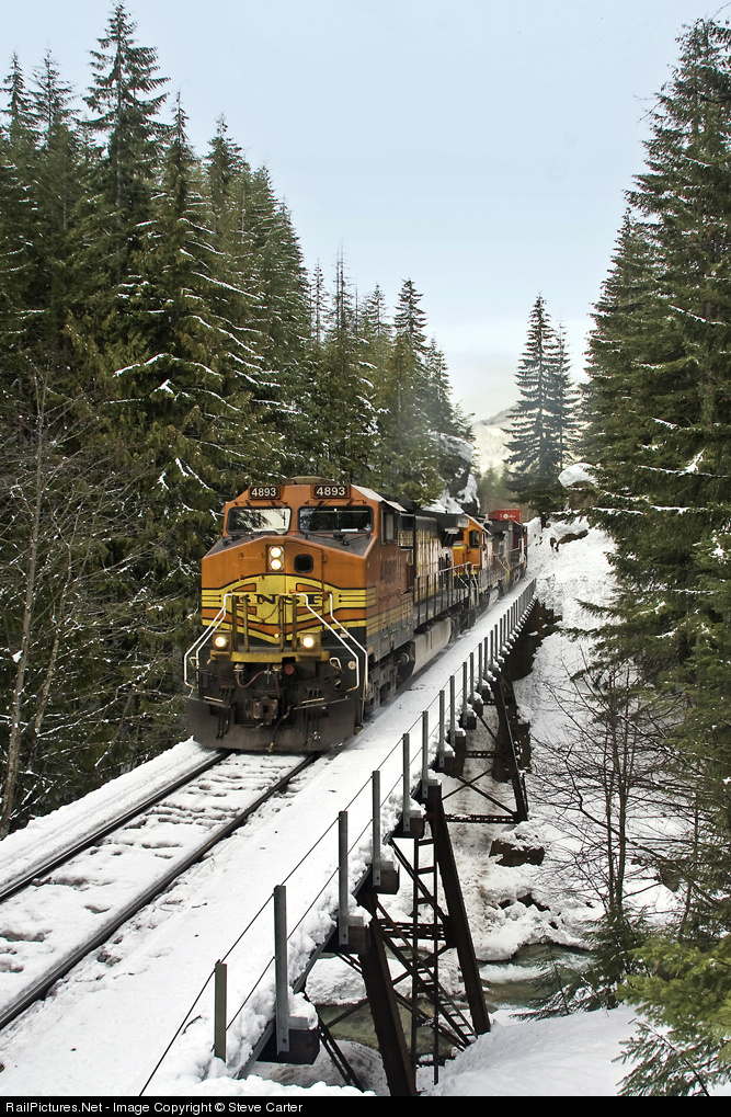 A 1/4 mile snowshoe adventure over the most snow on the BNSF Scenic sub since 1957, yielded this shot of an EB Z train over Deception Creek Bridge. My first attempt at snowshoe rail fanning turned out to be a success, due in no small part to my coach and guide Ross Fotheringham. Ross made it in half the time, while I struggled up the hill in near exhaustion!