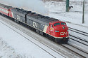 CN special with 58 year old 102 in the lead accelerating away from St Lambert station. The train was promoting a special olympics marathon.