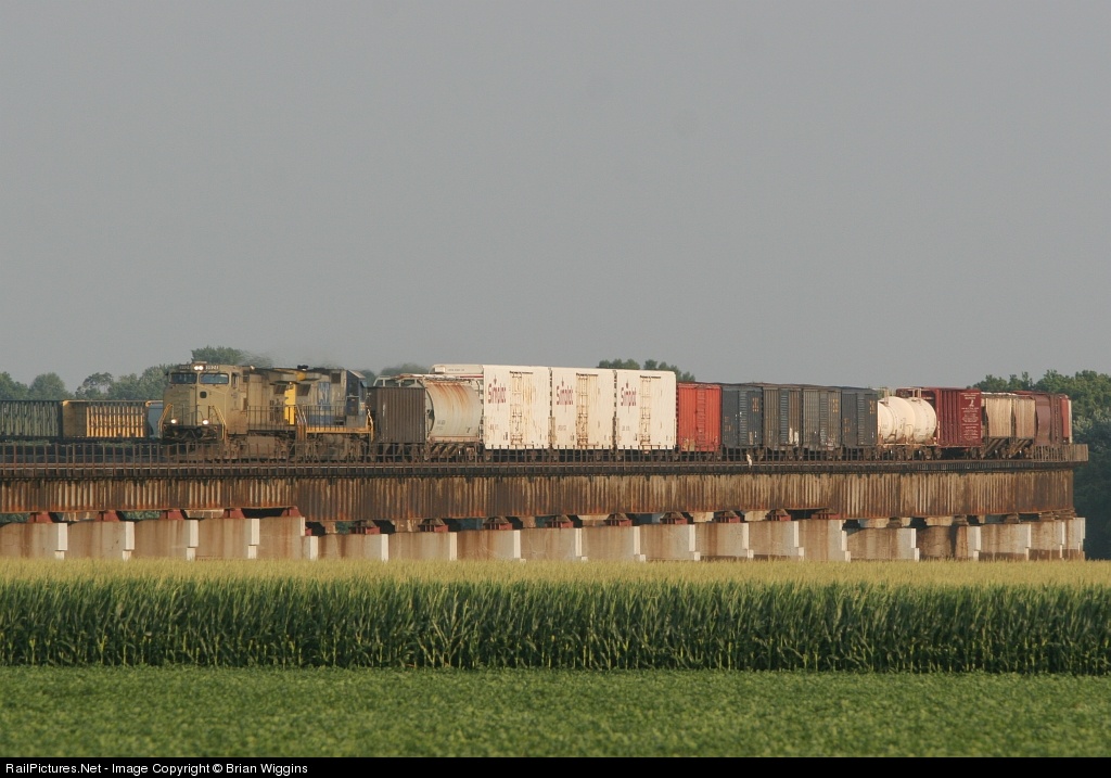 A NS grey ghost powers a CSX train across the Ohio River and in to Indiana on a steamy summer afternoon.