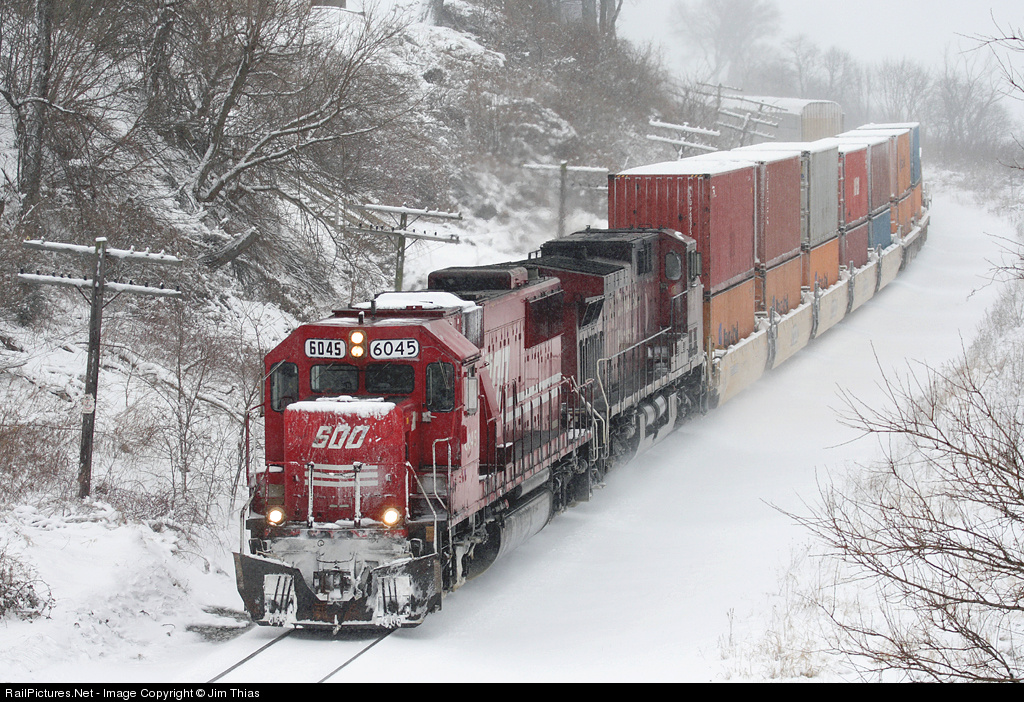 6045 leads Canadian Pacific's X500 on a snowy morning in west Michigan.