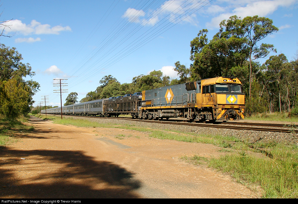 | NR1 leads the Indian Pacific Passenger service through Bargo on a rare occasion operating on this line due to Trackwork closing the main line it usually operates to Adelaide,unfortunately we werent greeted with the Indian pacific Engine just a old dirty NR. |