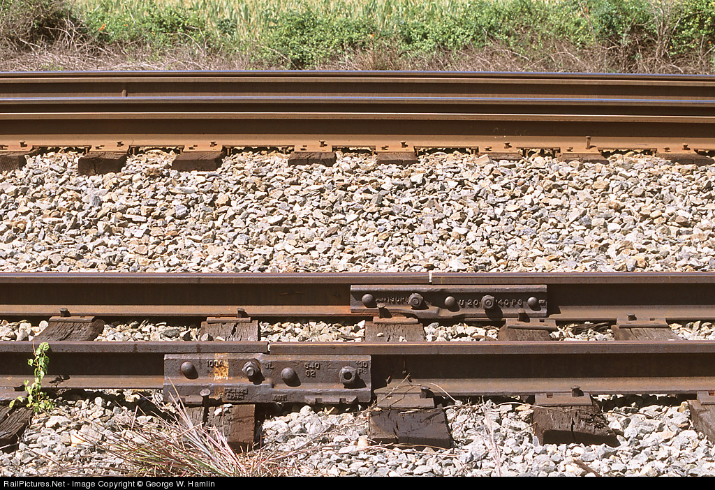 Note rail joiners for different rail weights in foreground; high iron to the rear.
