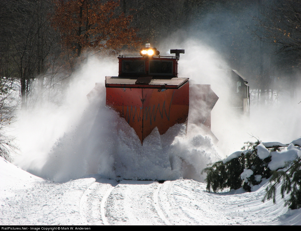 A Great Lakes Central plow extra with ex Ann Arbor plow 4502 is beginning its descent of Elmira hill.