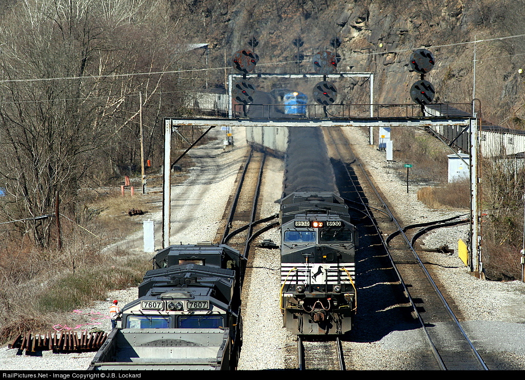 Remarks: NS U9Z moves over while a MTY coal train waits for the track rights from the classic signal bridge. As all this goes on, an ex-Conrail unit waits patiently. As soon as the loaded train passes the ex-con will hook up and become the pusher.