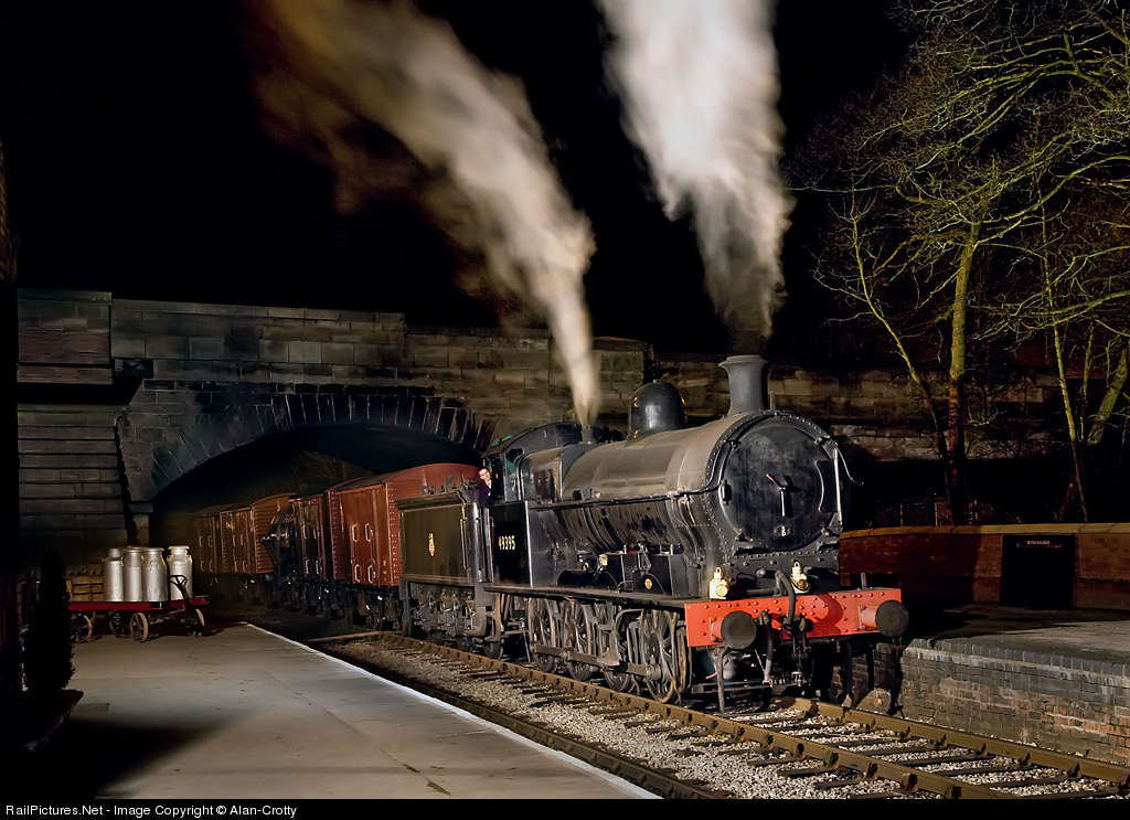 On the platform barrow milk churns await collection by the next up train as Super D 49395 enters the down loop with a short goods train. Lighting courtesy of Simon Hopkins.