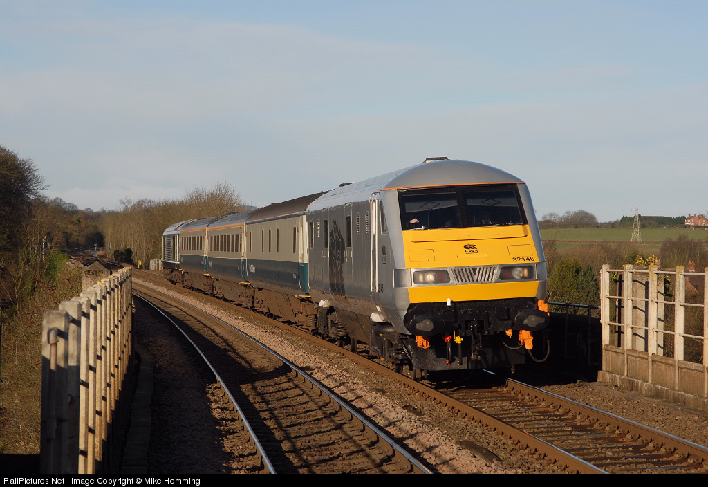 DVT 82146 at the front and 67029 “Royal Diamond” pushing from the rear, 5z62 06-02hrs Crewe to to Wolverhampton passes Shifnal on WSMR driver training duties. note the Mk3 sleeper coach behind the DVT |