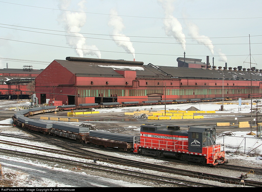 ArcelorMittal 150 has a new paint scheme to go with its latest merger. In under 10 years, this caterpillar-powered oddity has gone from grimy White > to grimy Baby Blue >to, now, soon-to-be-grimy Highway Cone Orange. All this time, it continues to be a fun operation to watch, as it shoves these iron slabs, hot enough to warm me up on the Ped Bridge, around a curve on its way deep into the plant.