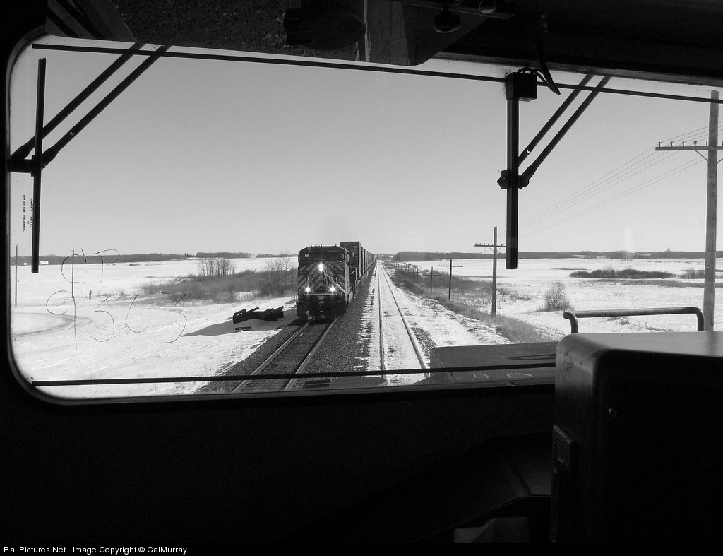 CP 105 lead by CEFX 1040 passes me in the cab of 9303.