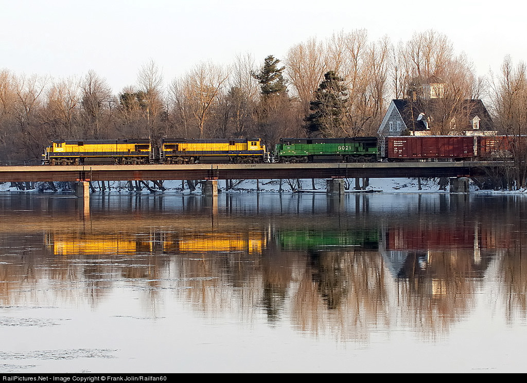 Montreal bound MMA 3613 North, crosses the Richelieu River at sunrise