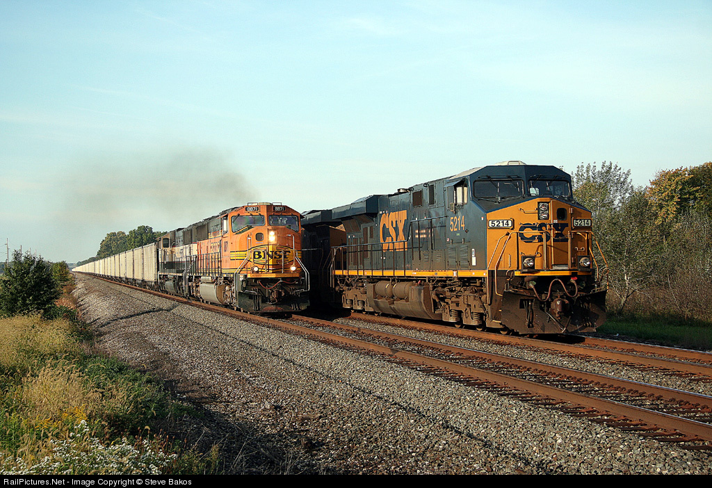 CSXT 5214 is in the hole with BNSF 8871 (SD70MAC) about to pass.