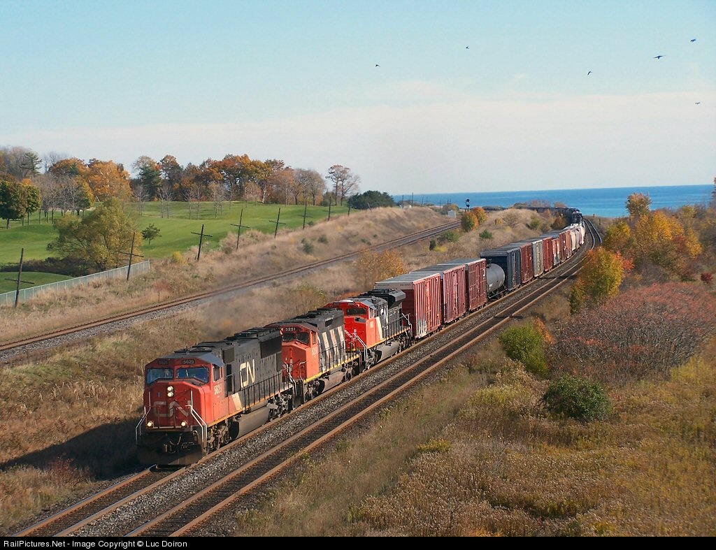 A nice change from all the snow! Going back 4 months, M30511 skirts Lake Ontario, with Mac Yard bound tonnage rolling at 60MPH, drifting past the golf greens of Port Hope