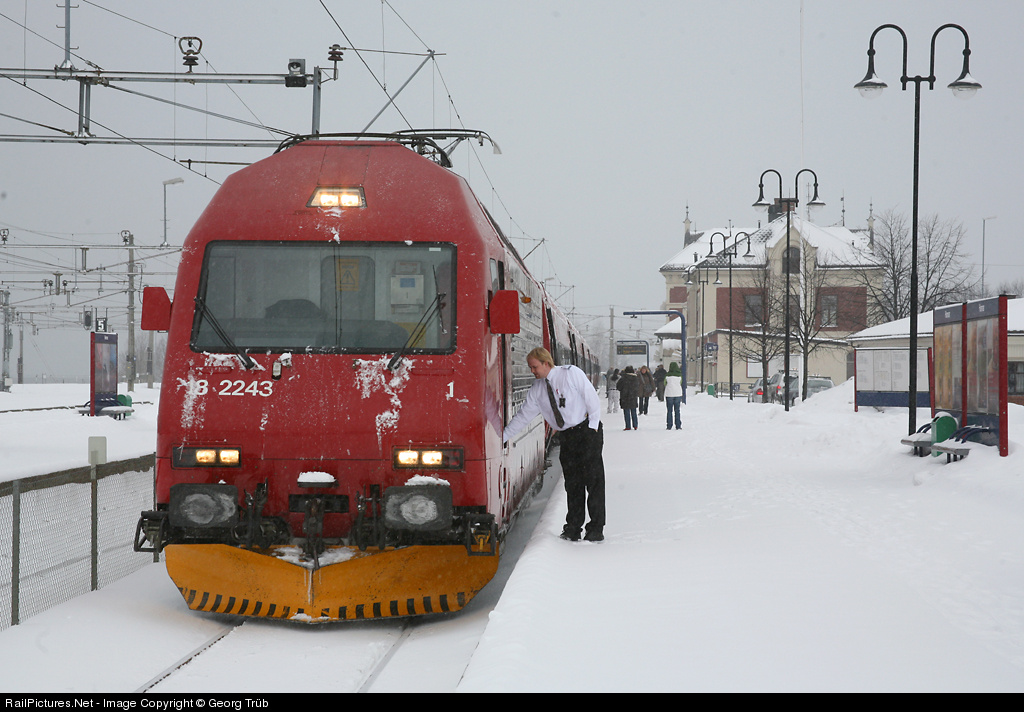 | A short coffee brake for the engineer of the express train from Trondheim to Oslo in the station of Hamar. The 22 El 18 locomotives were built by SLM and ADtranz in 1996/97 and are a variation of the Swiss Re 460. |