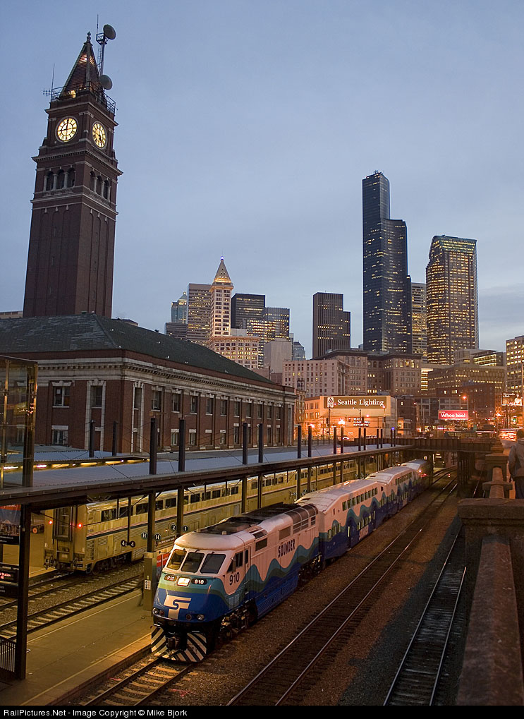 RailPictures.Net Photo: SDRX 910 Sound Transit EMD F59PHI at Seattle, Washington by Mike Bjork