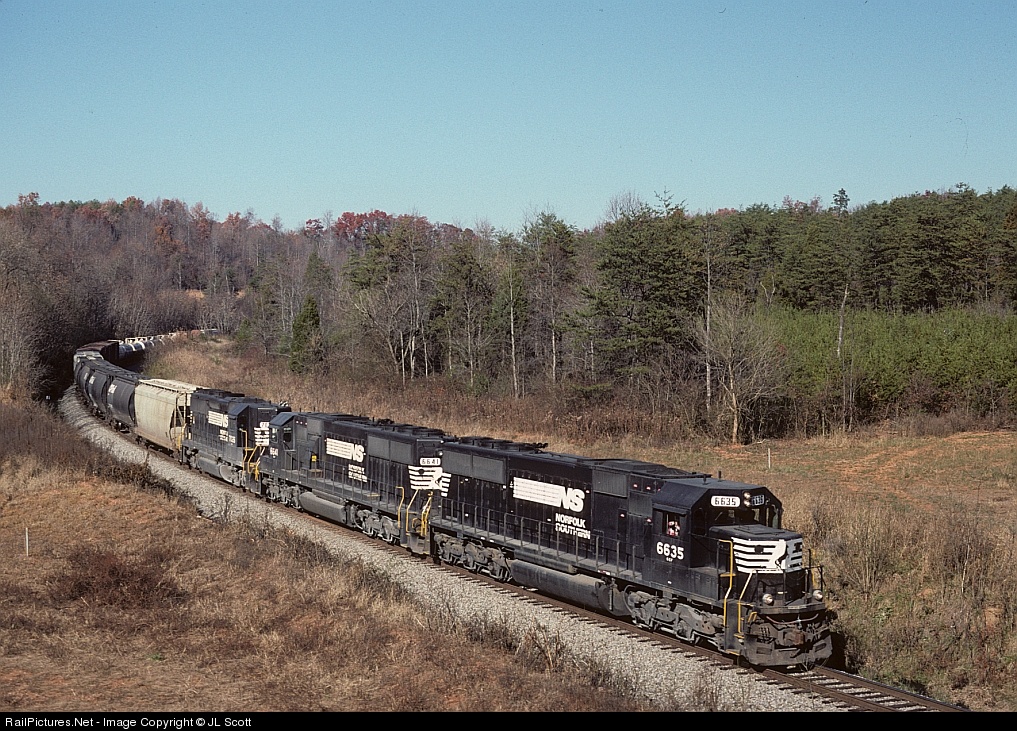 Train 177 heads east on the former Virginian toward the Hurt Connection at Altavista with two SD60s and a GP50. When 177 reaches Altavista (technically Hurt) it will go through the Hurt Connection and head south toward Linwood, NC on the former Southern.