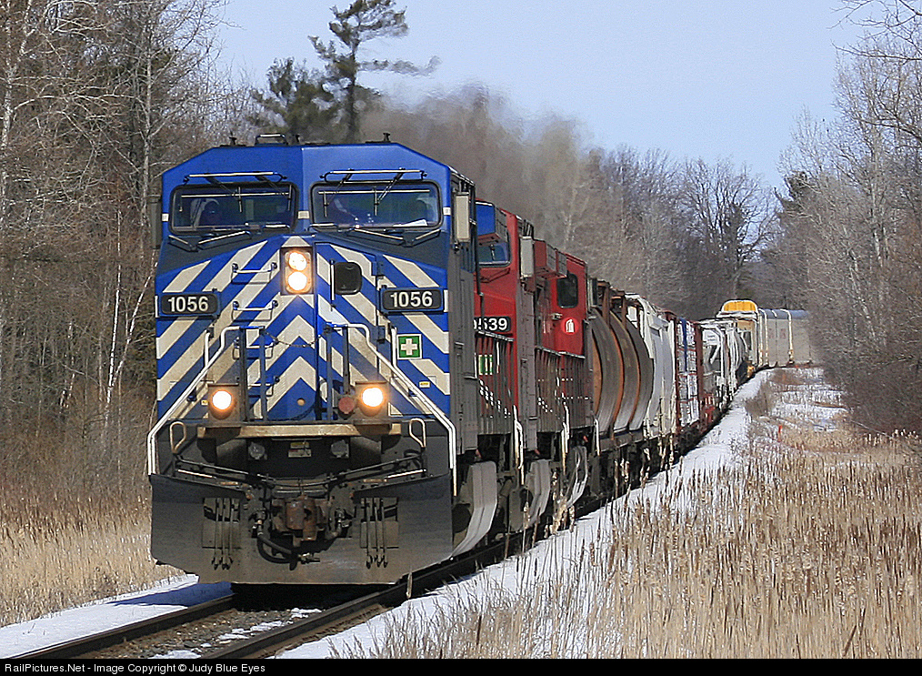 | CEFX 1056 leads 2 CP GEs approaching Progreston on the CP Hamilton Sub, ordered 0600 from Toronto Yard with lift at Lambton of 3200' of automotive traffic for Buffalo. Thanks for the correction and additional info to wd2002 who recognized his train - and us - on RP.Net! |