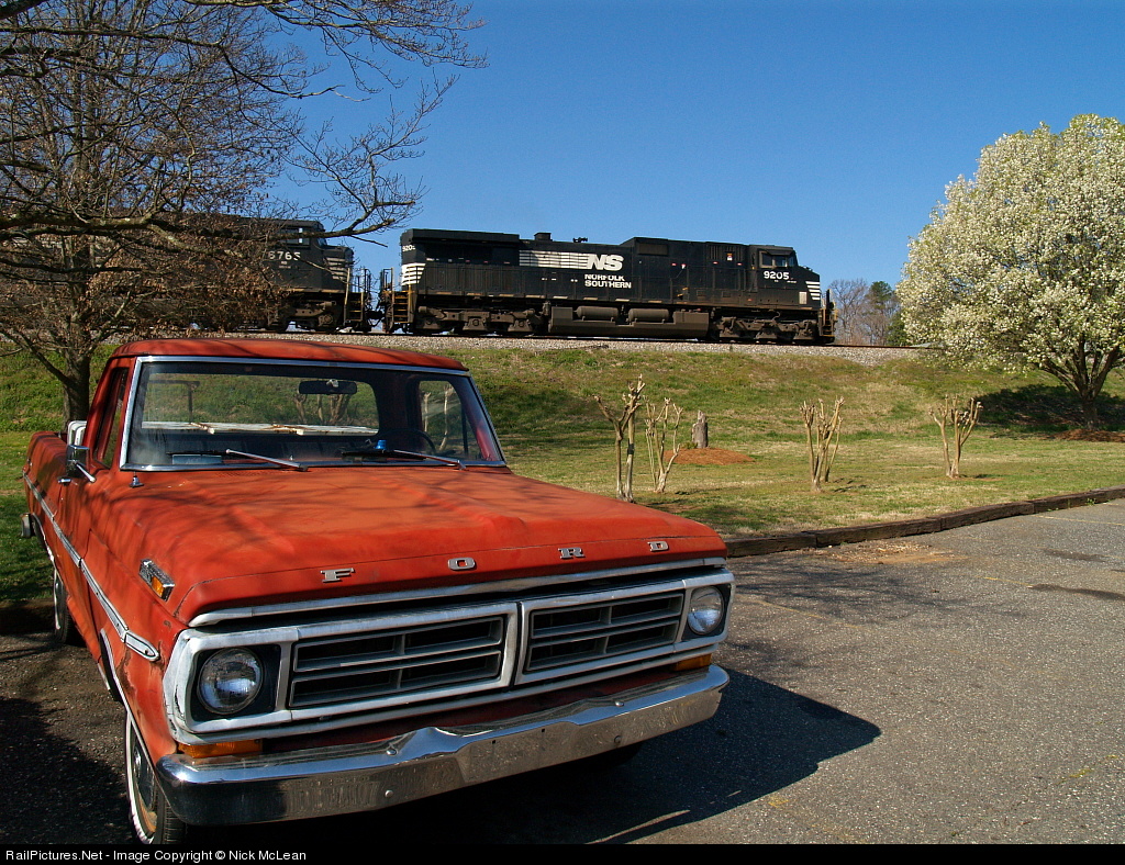 | FORD VS. ....ok there were no GM products to be had this morning, so it'll have to be Ford vs. GE. Three units lead a 14,000 ton coal drag to the siding at Gastonia. |