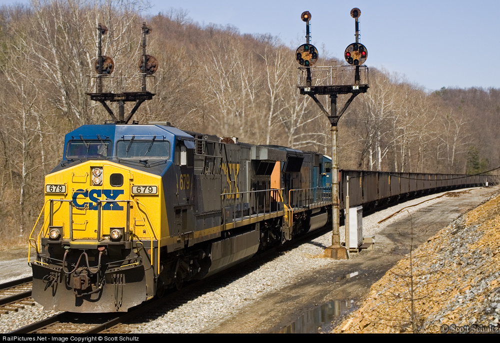 | CSXT 679 leads mty coal train E-723 to Grafton, WV, thru the CPLs in Magnolia, WV. |