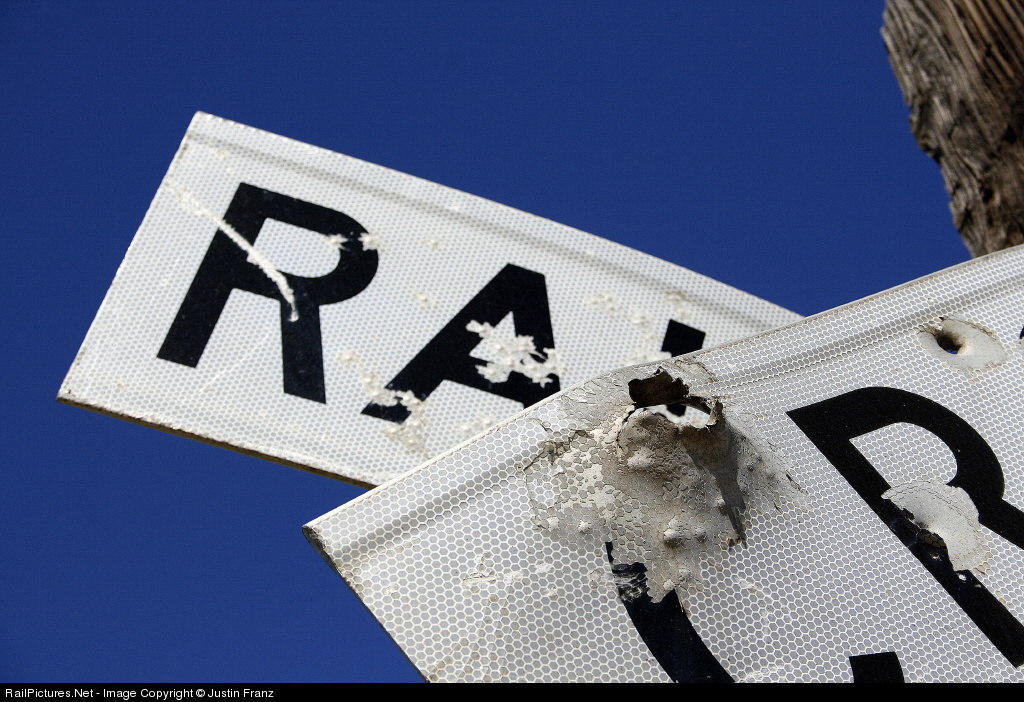 Wild West: Sometimes when waiting for a train you'll shoot anything. That was the case on the afternoon of March 30, 2008 at Schilling, MT. An Montana Rail Link crossing sign is clearly located in the 'wild west.'