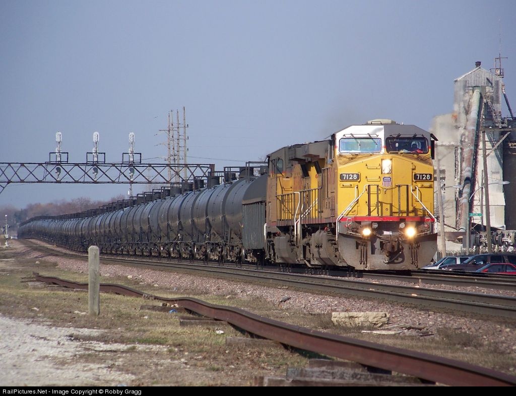 UP AC4400CW 7128 leads a eastbound ethanol train through Elmhurst.