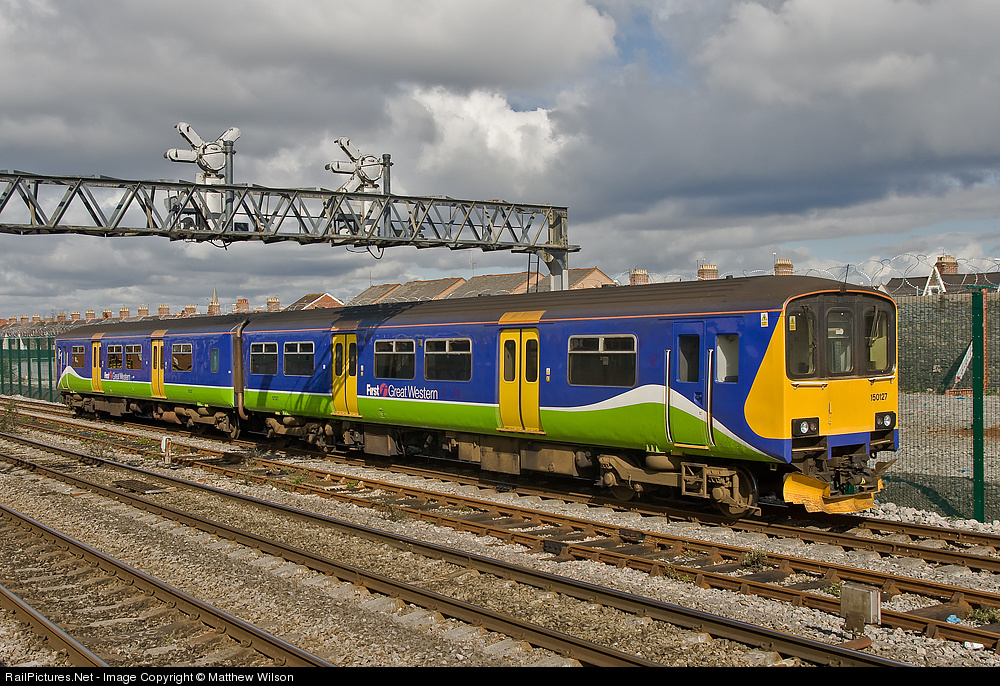 | 150127 is one of a few units that moved around with fleet reshuffles as a result of the franchise changes of 11th November 2007. Seen wearing it's Silverlink livery with First branding, the unit is shunting west of Cardiff Central |