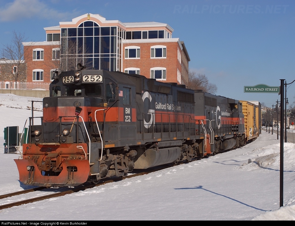 | The sole surviving Maine Central GP38 - formerly MEC 252 and now BM 252 - is seen leading the Mattawamkeag to Northern Maine Junction train MABA on January 21, 2008. |