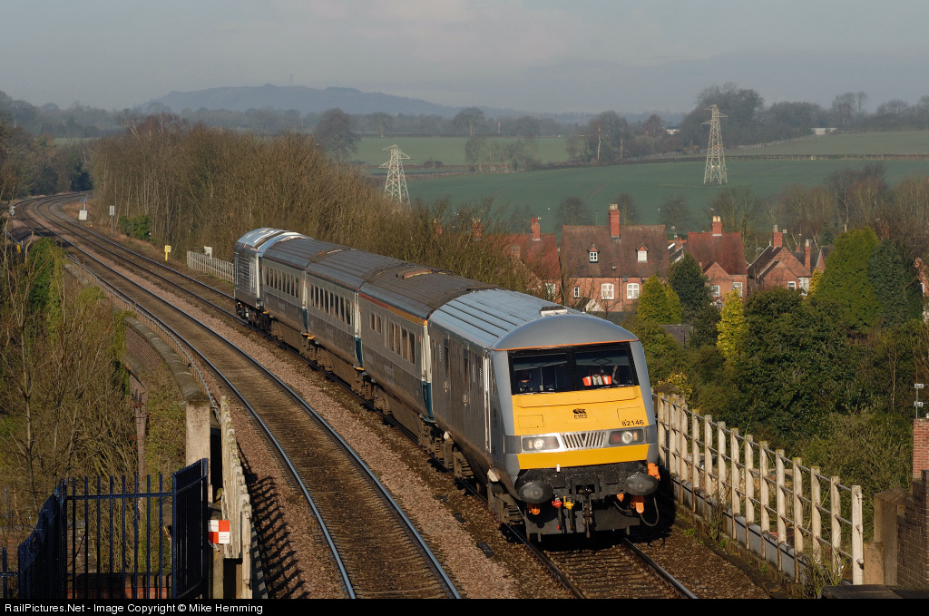 | DVT 82146 at the front and 67 015 pushing from the rear, 5z62 06-02hrs Crewe to to Wolverhampton passes Shifnal on WSMR driver training duties. note the Tourist Standard Open Buffet 10246 behind the DVT (thanks for Richard W Jones for the correct stock detail) |