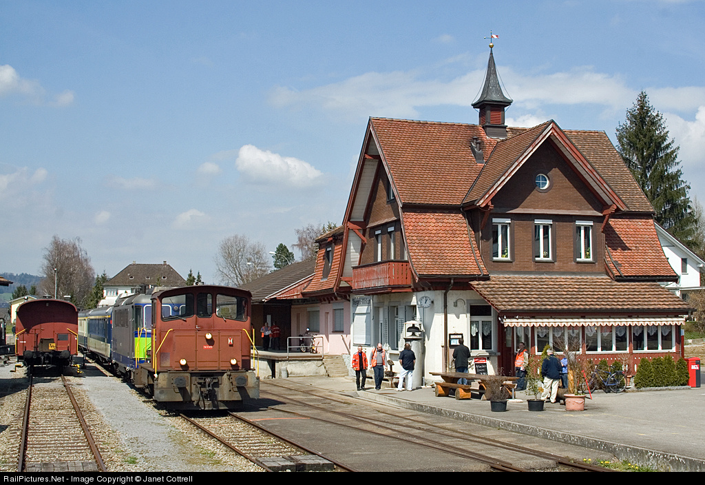 | A rare trip on the ST, which lost it's regular passenger service in 1971. The L&CI's "Tringen and Emmental Explorer" tour at the end of the line at Triengen-Winikon station features one of the lines two diesel locos on possibly its first ever passenger working. Tucked in behind for the ride is BLS electric loco #506, which was used on the main part of the tour over electrified lines. |