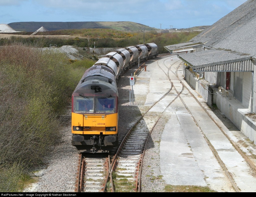 | Class 60s in Cornwall are rare enough but this picture shows the first ever visit of such a loco to the Parkandillack branch. 60048 is seen passing Treviscoe with loaded wagons for (initially) Burngullow. |