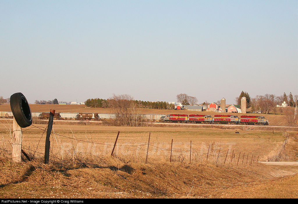 | With 61 loads in tow the Oelwein Job nows head for Waterloo in the late afternoon. This job went to work in Waterloo today at 11am and made a Fairbank turn. Somedays this job will run all the way to Oelwein as needed. 4 units was a nice treat since most days the traffic is light enough that 2 units will do the trick. |