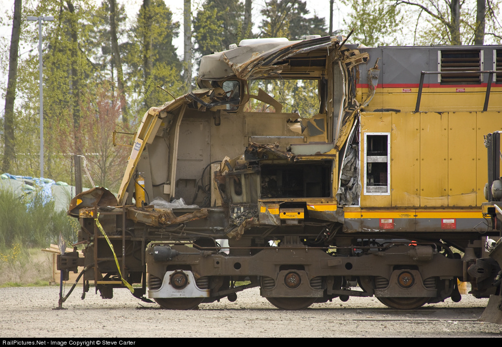 This locomotive was involved in a collision 12/17/2007 between the towns of Derby and Mulvane Kansas. The unit was leading the Red Rock coal train when it collided with a UP local, taking impacts from several cars. The crew apparently survived. It's in the early stages of repair at CEECO. Click Here for a different view.