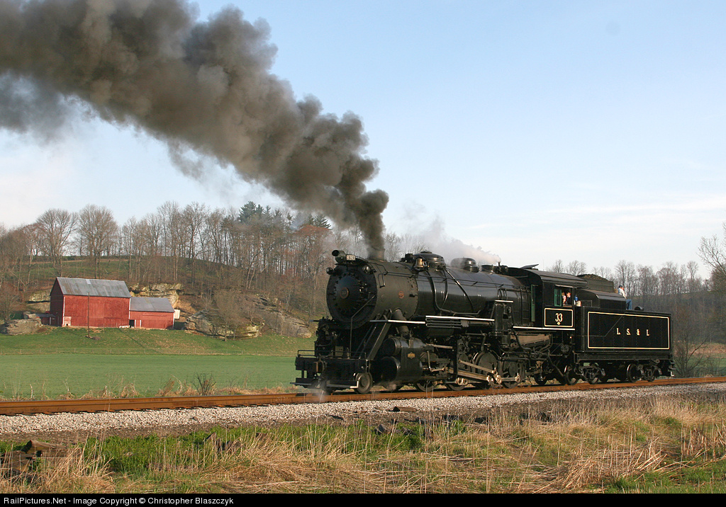 Some of the best sun and only smoke seen from Lake Superior & Ishpeming 2-8-0 33 was on the reverse move from Morgan Run to Sugarcreek, seen here passing a farm just south of Pearl early Saturday morning.