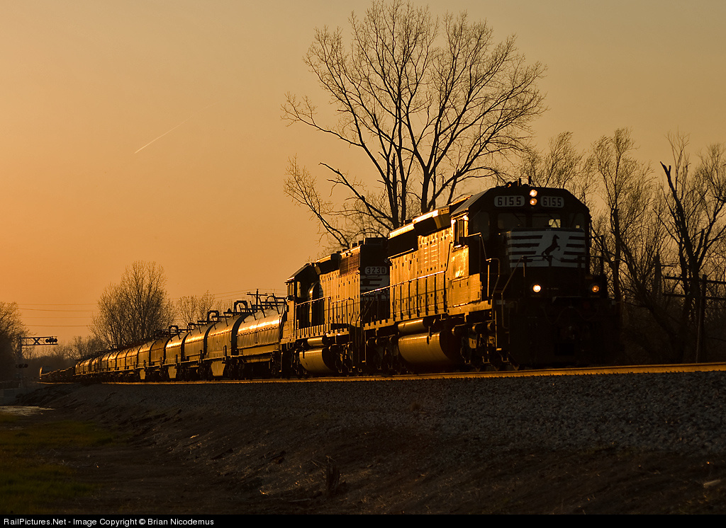 | In the midst of a beautiful spring sunset, NS 323 hustles back east to Ft Wayne with only about 2 hours left to work after interchanging with the EJ&E in Van Loon. |