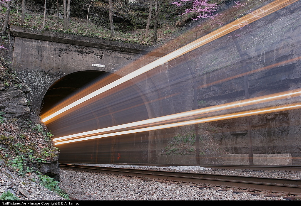 The face of Glen Alum tunnel will soon change as the Heartland Corridor project gets underway, if it ever does. Redbuds cling to the face as a coal drag roars out at dusk.