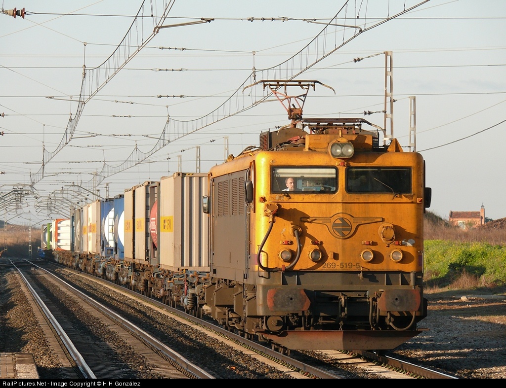Electric locomotives of the series 269. Work in container trains from Madrid to León.