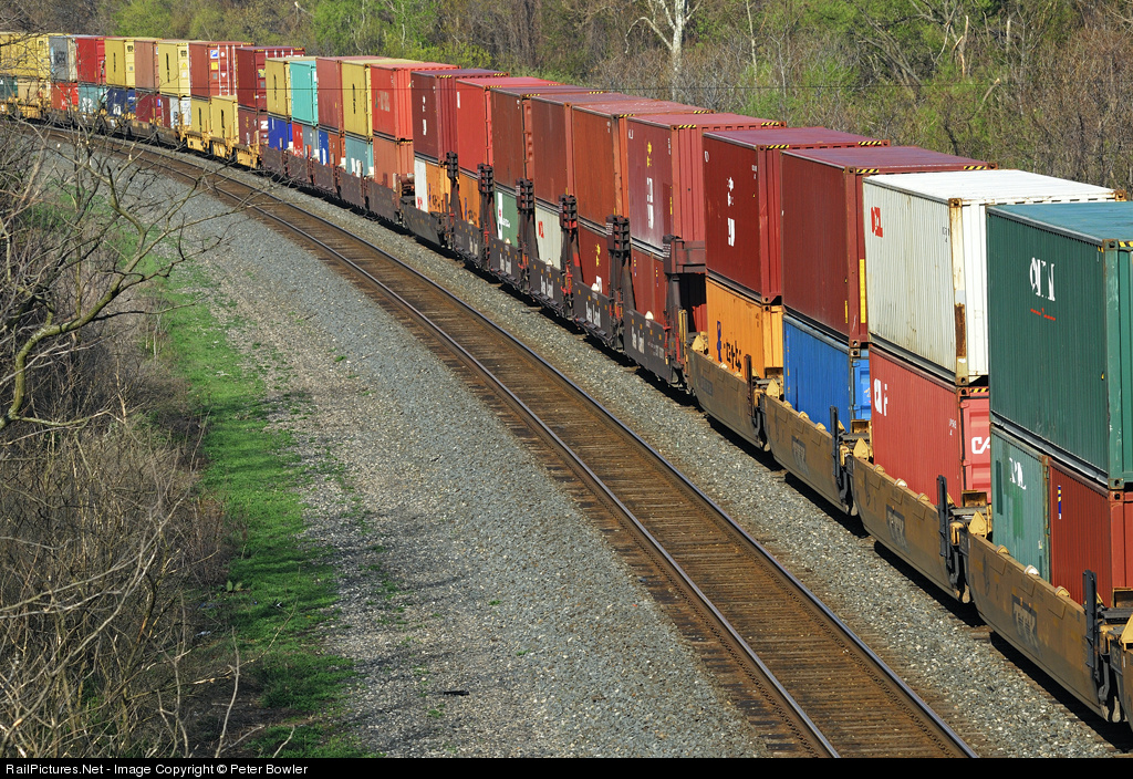 CSX colorful doublestacks eastbound with a long, long intermodal train of 480 axles and solid blocks of full stacks, making a pretty sight on a sunny morning