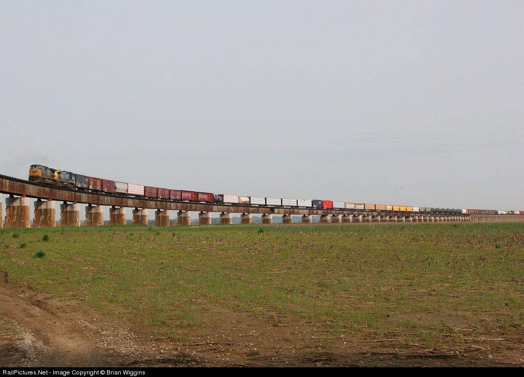 SB train crosses over the finally dried out flood plain south of Evansville.