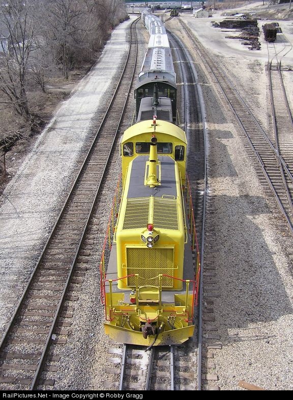 EJ&E SW1200 303 works Joliet Yard, showing off its new yellow paint.