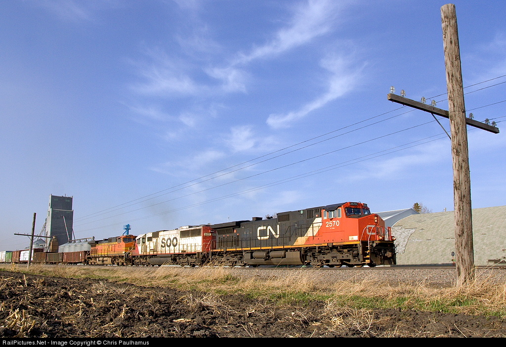 A high priority Pasco, WA - Dilworth, MN re-route heads south late in the day with a CN-SOO-BNSF trio providing the power. In the first three years of railfanning the northern plains, I've only caught CN on the point of a BNSF train two times, but in the last two weeks, I've managed to double that number!