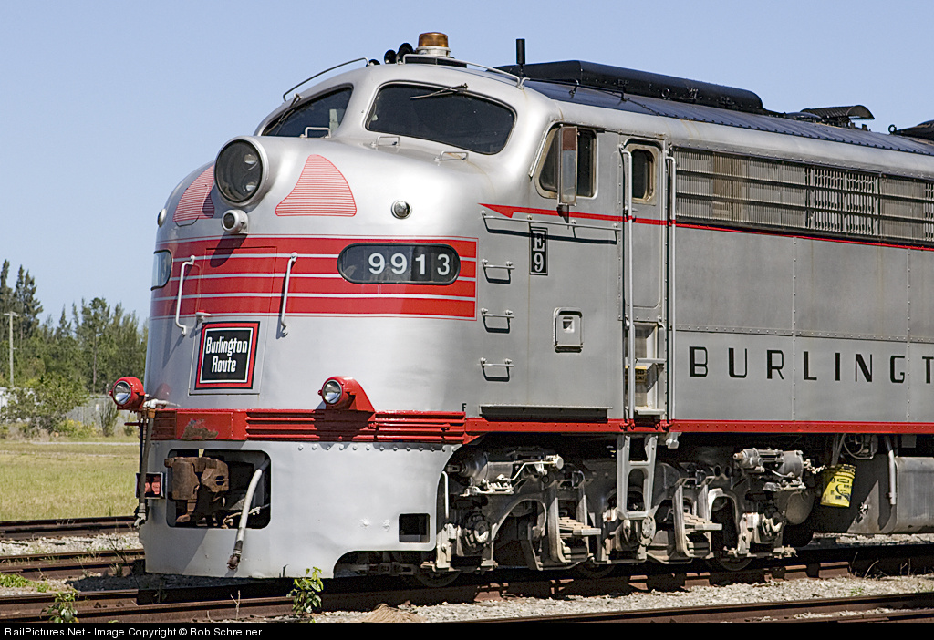 Burlington Route painted E9A was ex-PPCX 9913, exx-BN 9913 nee- CB&Q 9988B.
