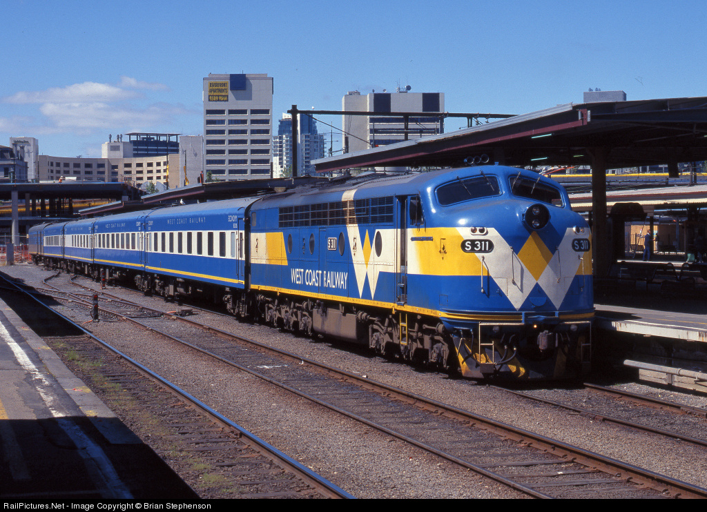 Another former Victorian Railways 'Bulldog' No S311 waits to leave Spencer Street with the 12.20 train to Warrnambool. This company has since folded but S311 lives on with CFCLA and is hired to El Zorro and is still on the broad gauge.