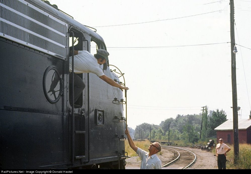 The operator personally hands up Form 19 orders to the fireman on head end of the Patriot Special.