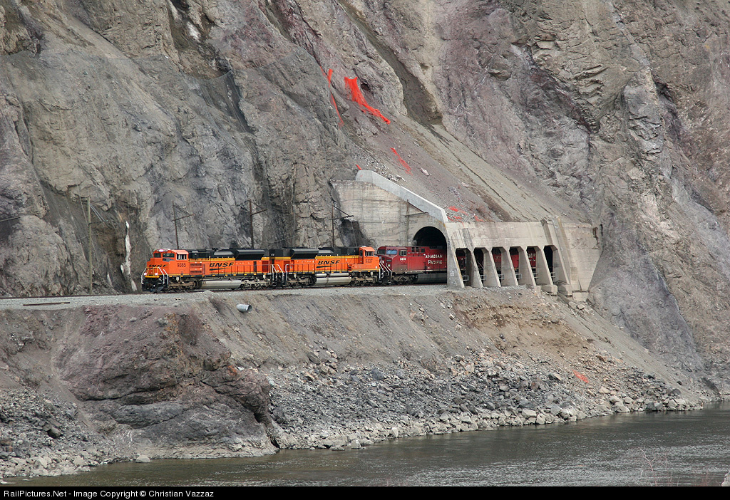 2 BNSF SD70ACe are on their last month of operation on CP Rail seen here leading CP 401-10 downstream at the Skoonka Tunnels.