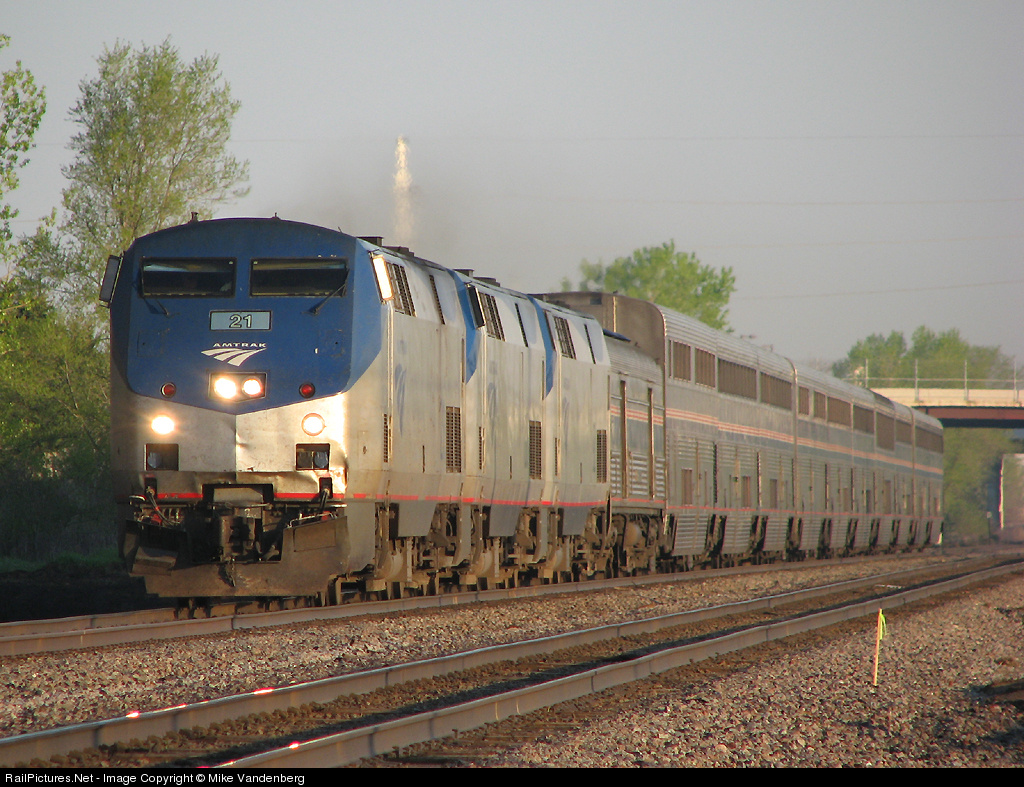 RailPictures.Net Photo: AMTK 21 Amtrak GE P42DC at Coon Rapids, Minnesota by Mike Vandenberg
