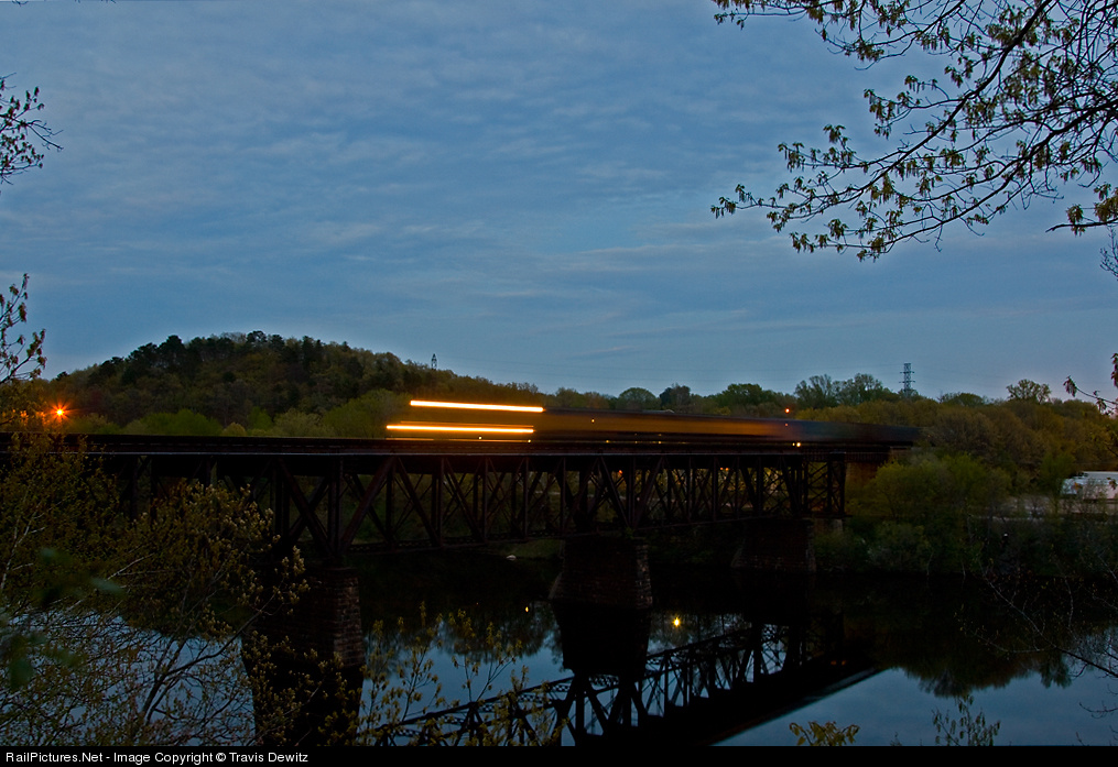 Union Pacific 3356 streaks across the Chippewa River bridge as the night sky quickly grows darker and darker.