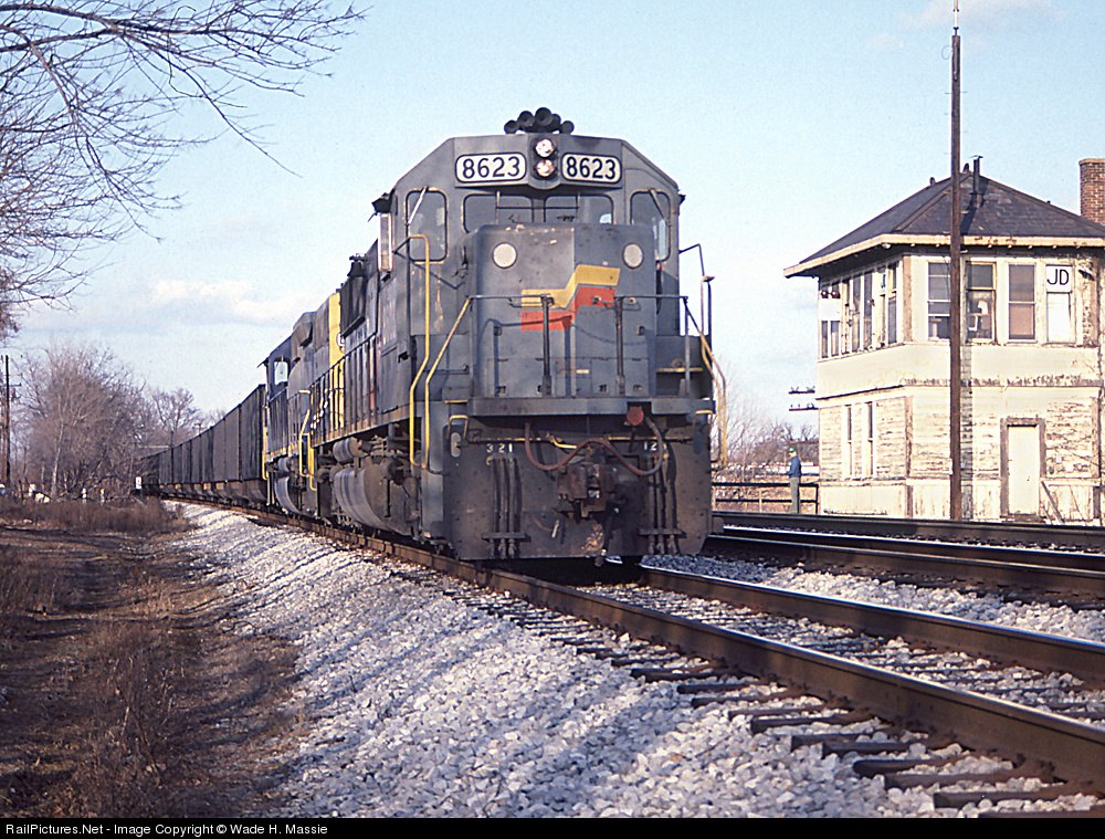 Empty hopper trains usually took the Old Main Line out of Baltimore, but on weekends it was possible to see them on the Capital and Metropolitan subdivisions. One such train is pictured here, passing venerable JD Tower, which closed just over one month later.