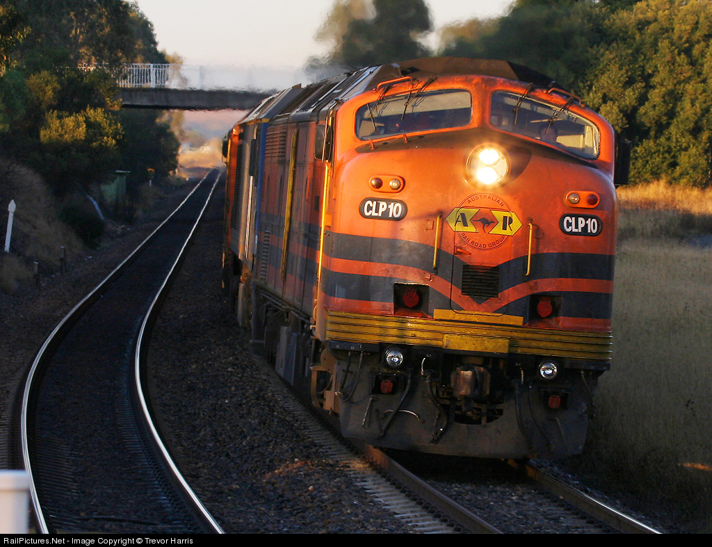 | First glimpse of sunlight hits the train in the early morning,CLP10 leads EL51 and CLF3 on Melbourne-Brisbane intermodal. |