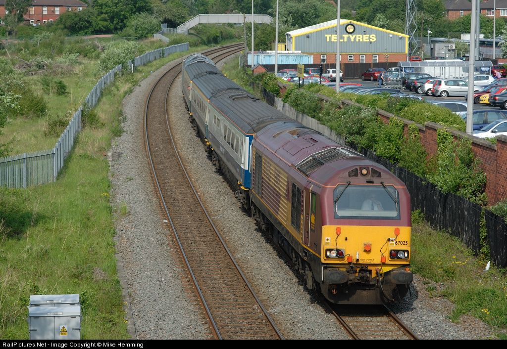 | 67 025 is seen passing the former Queen Street Goods Yard Wellington (Now a supermarket) working 1P03 the 08-55 SO Wrexham to Marylebone WSMR service. |