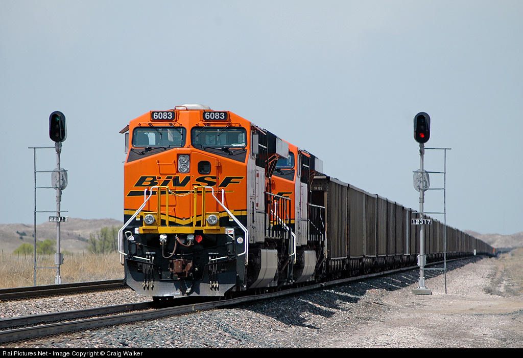 BNSF ES44ACs 6083 and 5848 (with ES44AC 6068 as the DPU) lead eastbound coal train C-NAMMHD0-29A through the Nebraska Sand Hills. The train is seen here a few miles east of Thedford, NE, at milepost 231.7 on the BNSF's Sand Hills Subdivision on May 12, 2008.